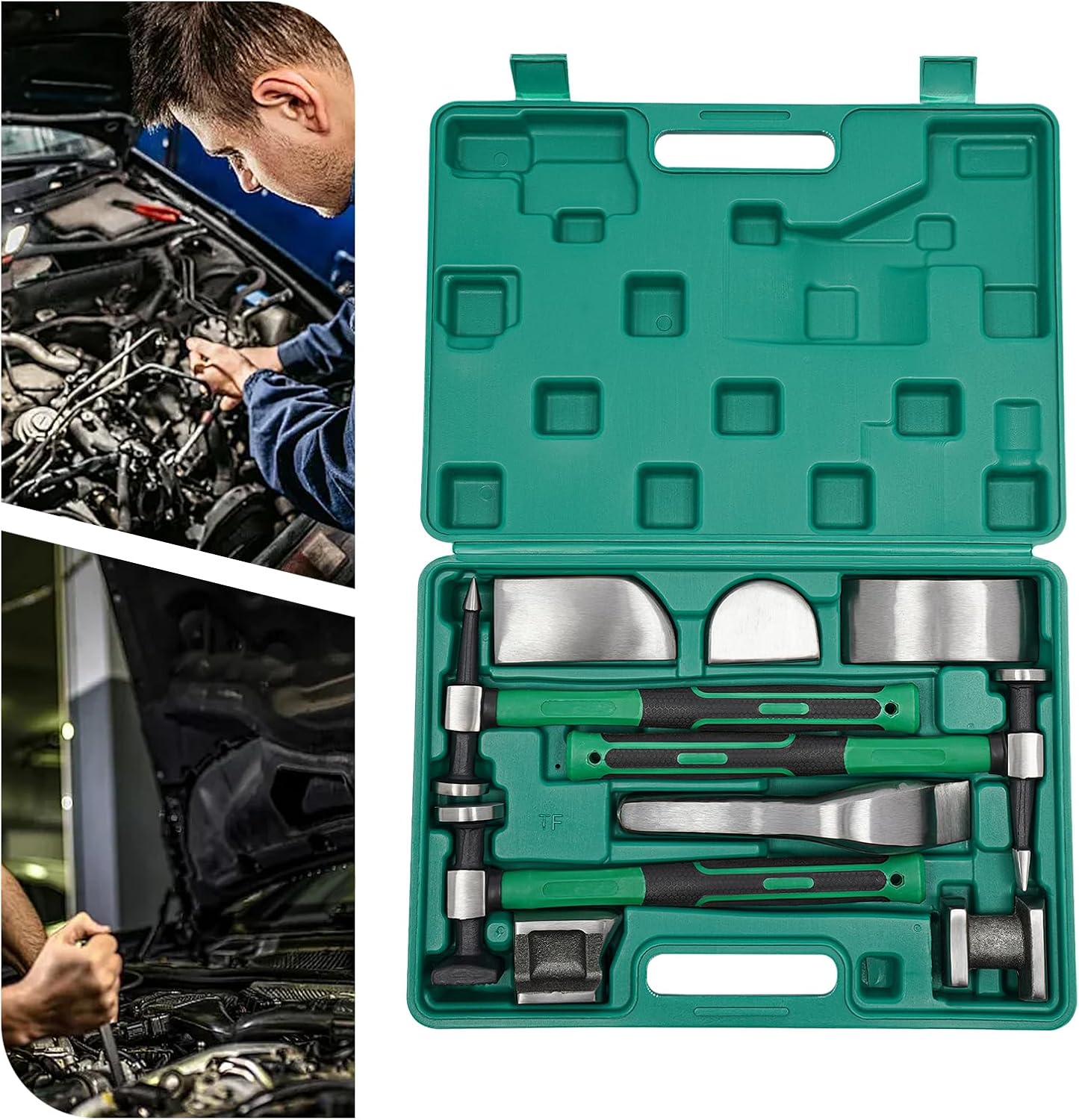 MARTILLOS DE LATONERIA Marca HUAQUIKIT X 7 Pcs PROFESSIONAL Descripción Material: Acero forjado Set de martillo y pesas ideal para latonería incluye 7 piezas:●1 Martillo punta fina de 11onz●1 Martillo estándar de 11oz●1 Martillo punta tipo cincel de 11oz●1 Entibador tipo cuchara de 18oz●1 Entibador curvo de 43oz●1 Entibador tacón de 38oz●1 Entibador tipo riel de 26oz● Maletín de transporte plástico ¡¡POLITICAS DE GARANTIA!!!CONTACTA NUESTRA LINEA DE WHATSAPP 322 897 76 05DROPTOOLSLas garantías serán validadas por defectos de fábrica o mal funcionamiento de los equipos despachados. ¿Tu producto tiene alguna novedad que debamos reportar? Una vez que recibas tus productos, cuentas con un máximo de 3 días para reportar a soporte: piezas faltantes, rotos, desperfectos y/o cualquier novedad que se detecte en producto que se considere importante. ¿No era lo que esperabas? Finalmente, recibido el producto, aplicamos una ley de retracto durante 3 días a partir del día de la recepción, para la posible devolución, te en cuenta que el producto debe estar en excelentes condiciones, tal como se recibió, sin piezas o accesorios faltantes, debidamente sellado y no manipulado. Sin rayones, manchas, rotos o imperfectos. Se anulará automáticamente el derecho de devolución a todos los productos que incumplan con lo antes expuesto. ¿Tu producto presenta fallas? Bajo las condiciones de uso adecuado, si el producto presenta alguna falla, cuentas con un máximo de 90 días de garantía por mal funcionamiento o defectos de fabricación que NO estén relacionados al mal uso y/o implementación de dicho producto. Para hacer efectiva la devolución, el producto debe entregarse debidamente protegido, cuidando de que se entregue en su empaque original, así como también incluir accesorios, documentos y demás implementos que acompañen al producto. Una vez recibido el producto bajo el soporte técnico, se estiman unos 5 días hábiles para hacer efectiva la devolución del mismo.